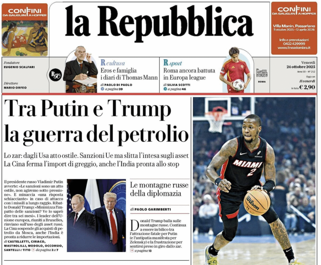 Guerra del petrolio tra Usa e Russia. La decisione del presidente Usa di colpire con le sanzioni il commercio di greggio di Mosca , scegliendo di fare ciò su cui il suo predecessore Biden aveva soprasseduto temendo ricadute globali sui commerci internazionali, colpisce Putin che accusa gli Stati Uniti di un “atto ostile” foriero per questo di una ennesima fase di scontro tra Mosca e Washington.