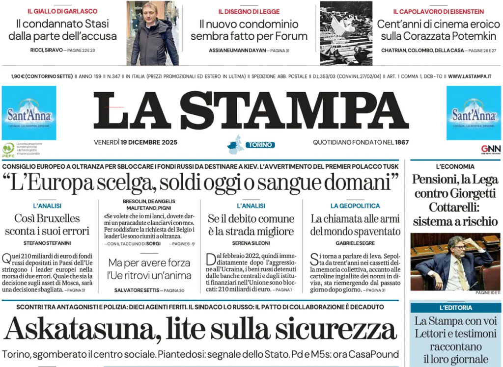 Vertice Ue, trovato l’accordo per l’Ucraina. I leader dell’Unione hanno concordato a Ventisette di fornire 90 miliardi di euro per gli anni 2026-2027 all’Ucraina sulla base di un prestito dell’Ue con bond raccolti sui mercati, garantito dal margine di manovra del bilancio dell’Ue. Salta l’uso degli asset russi. Meloni: «ha prevalso il buon senso». Per il premier belga Bart De Wever «oggi tutti possono uscire da questa riunione vittoriosi». Il premier polacco Donald Tusk «Abbiamo una scelta semplice: “O soldi oggi o sangue domani”.