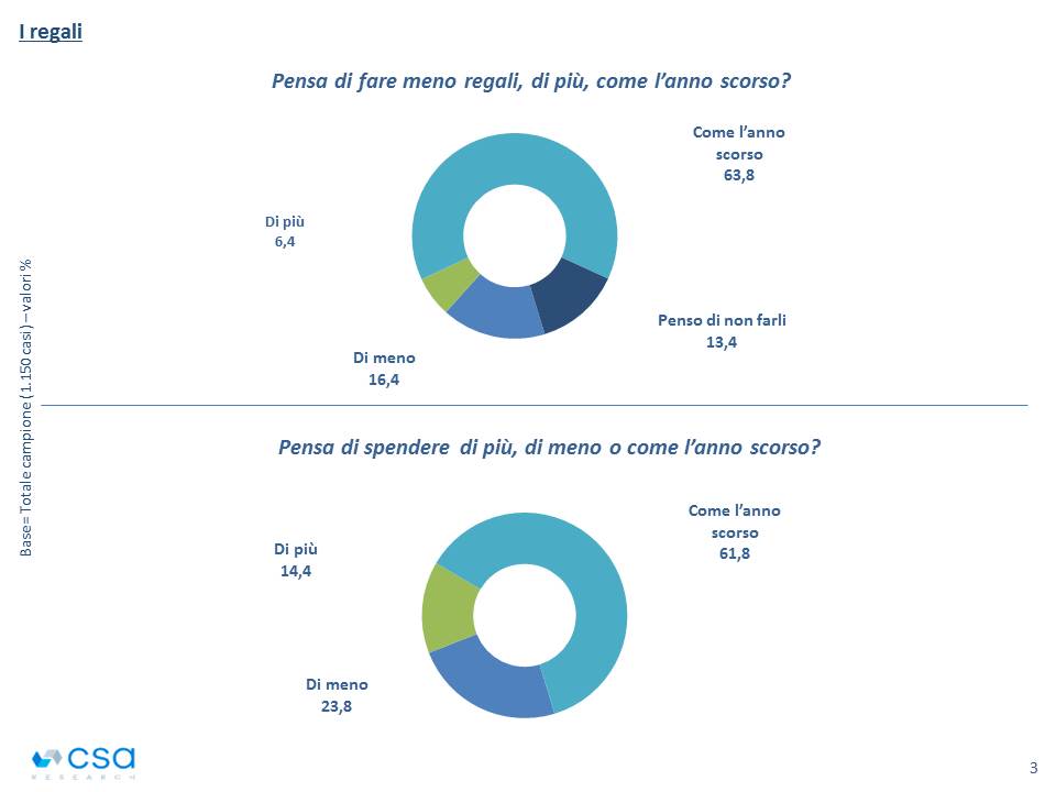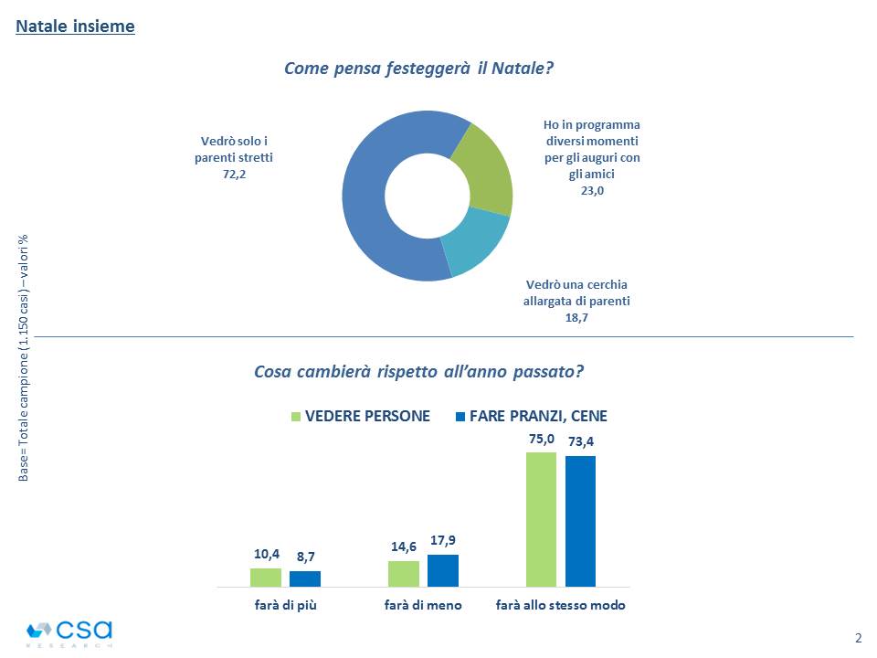 Non un vero e proprio ridimensionamento, ma un calo che pervade però tutto lo spirito dei festeggiamenti. Meno spese, meno regali, meno incontri e pasti condivisi. Un ligio rispetto della norma ‘Natale con i tuoi’ inteso come parenti stretti. Ma anche una concezione della festività concentrata sul significato religioso e sulla ricerca di senso.