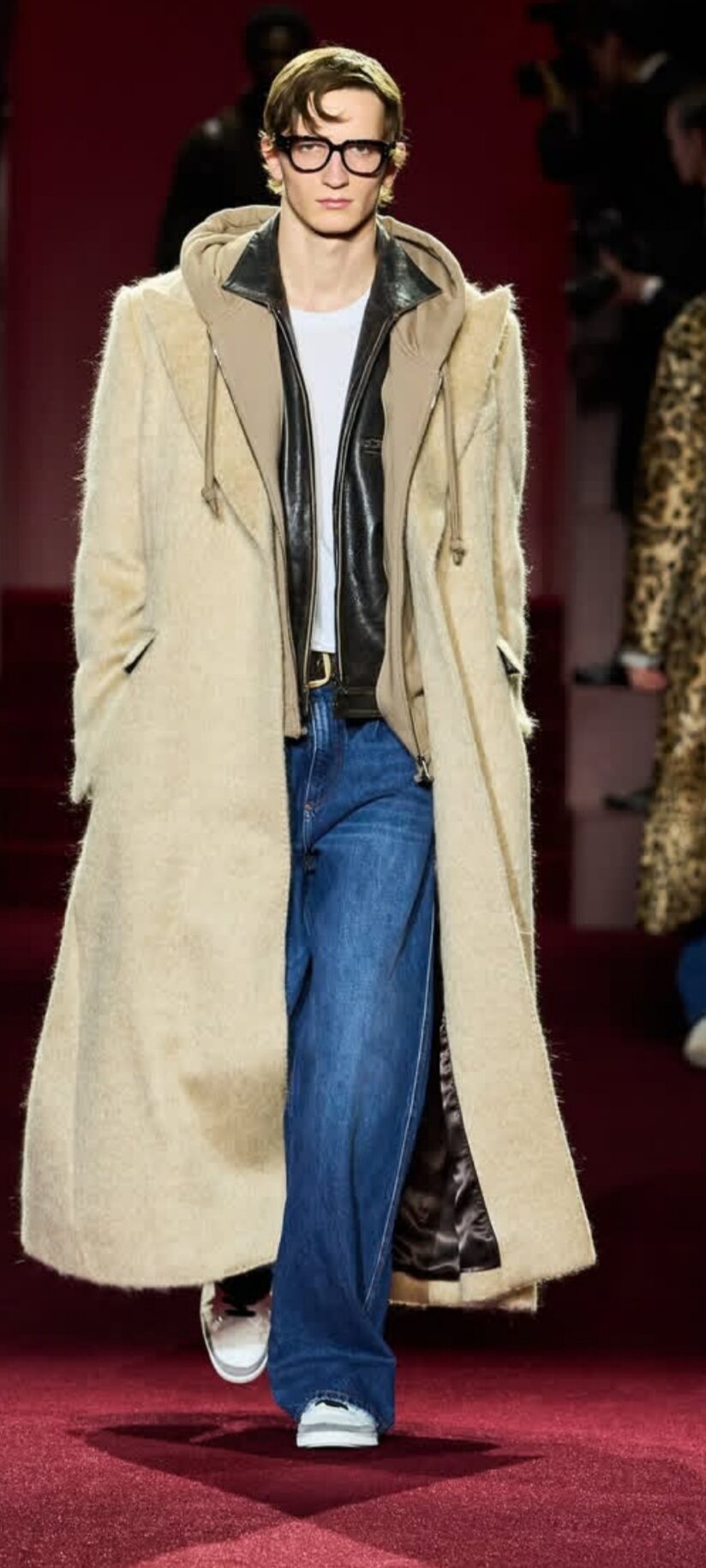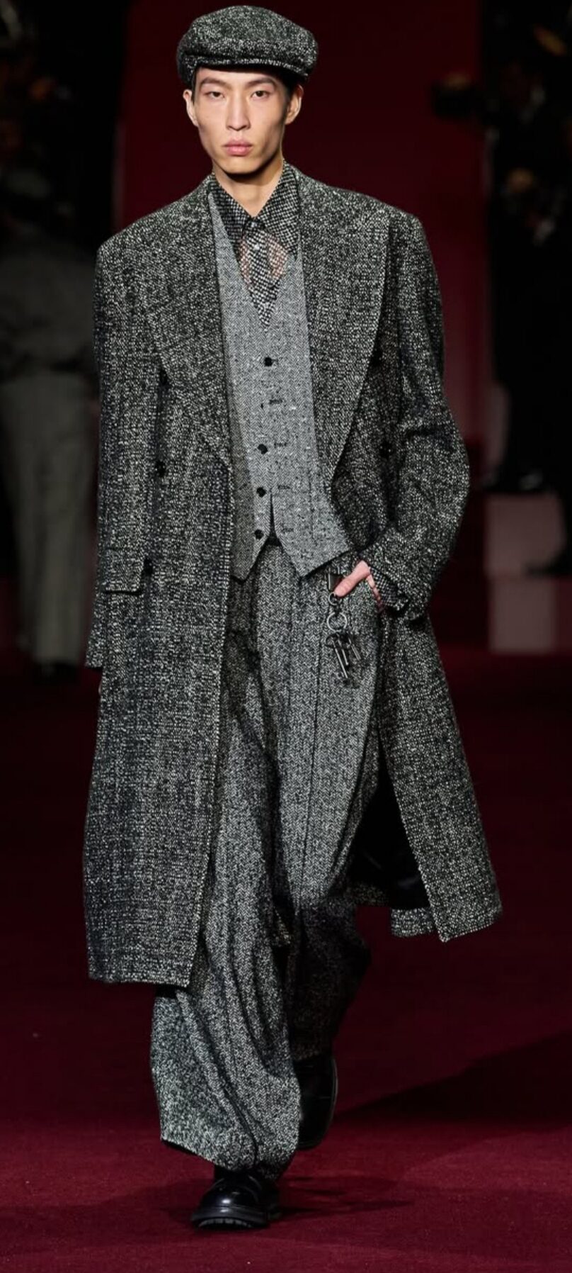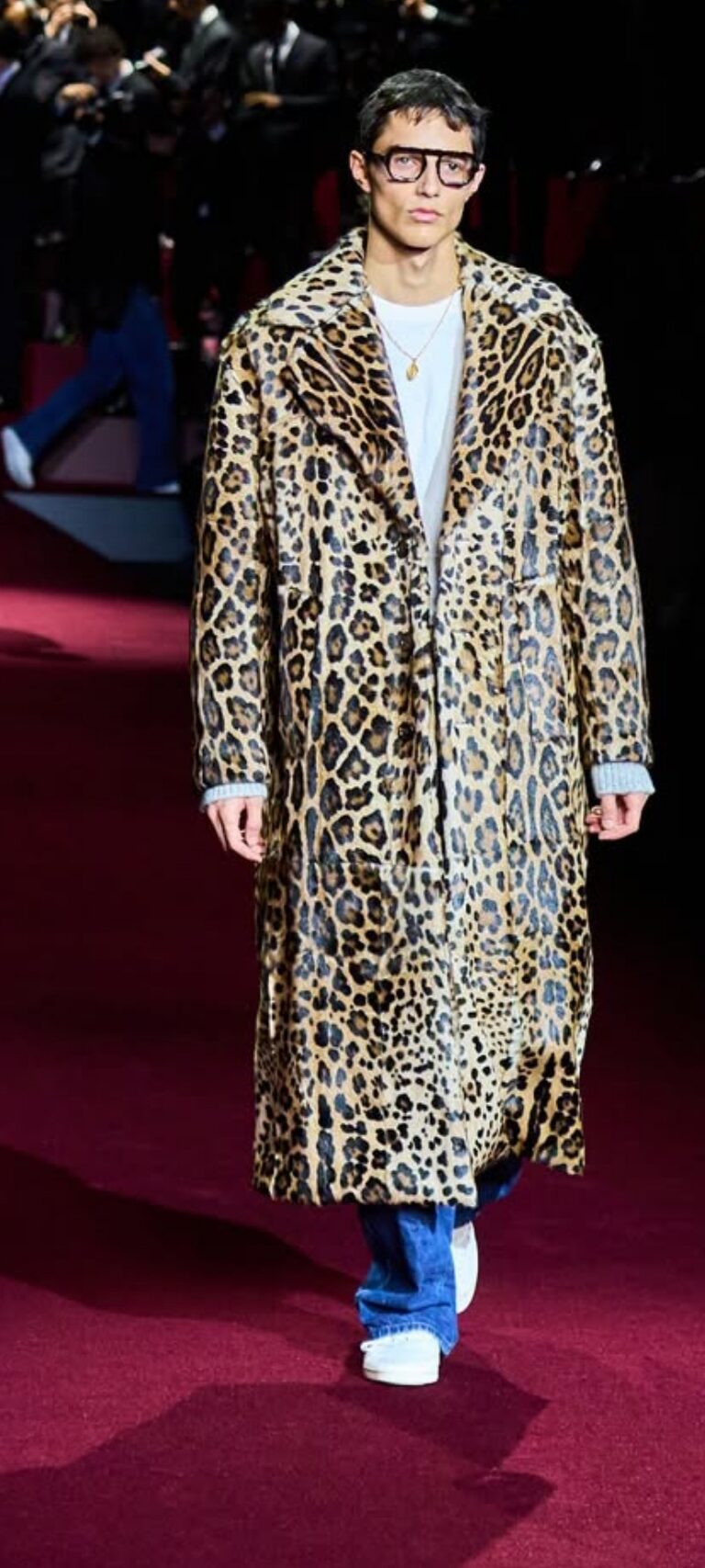 Alla sfilata Dolce&Gabbana Uomo autunno inverno 2025 /2026, per questa edizione della Milano Fashion Week, troviamo una miriade di Fotografi, pronti ad immortalare i modelli che calcano la strada. La collezione, intitolata, appunto, “Paparazzi”, presenta 69 creazioni, e si ispira al fotografo che nel film “La Dolce Vita”, seguiva e rubava scatti a Marcello Mastroianni, in perfetto stile anni ’60. Ed ecco cappotti dall’aria informale, ma dal taglio sartoriale ineccepibile. Mix di fantasie animalier, giacche in denim, t-shirt e pantaloni morbidi, blazer con pailettes e jeans modello cargo. La collezione narra, in modo suggestivo, una prima parte fatta di un’ atmosfera casual, un’altra invece, piena di lustri e clamore, come quella che si richiede per calcare il red carpet, nella Hollywood anni ’60. Chiudono lo show, tuxedo e completi in seta, impreziositi da vistosi inserti gioiello.