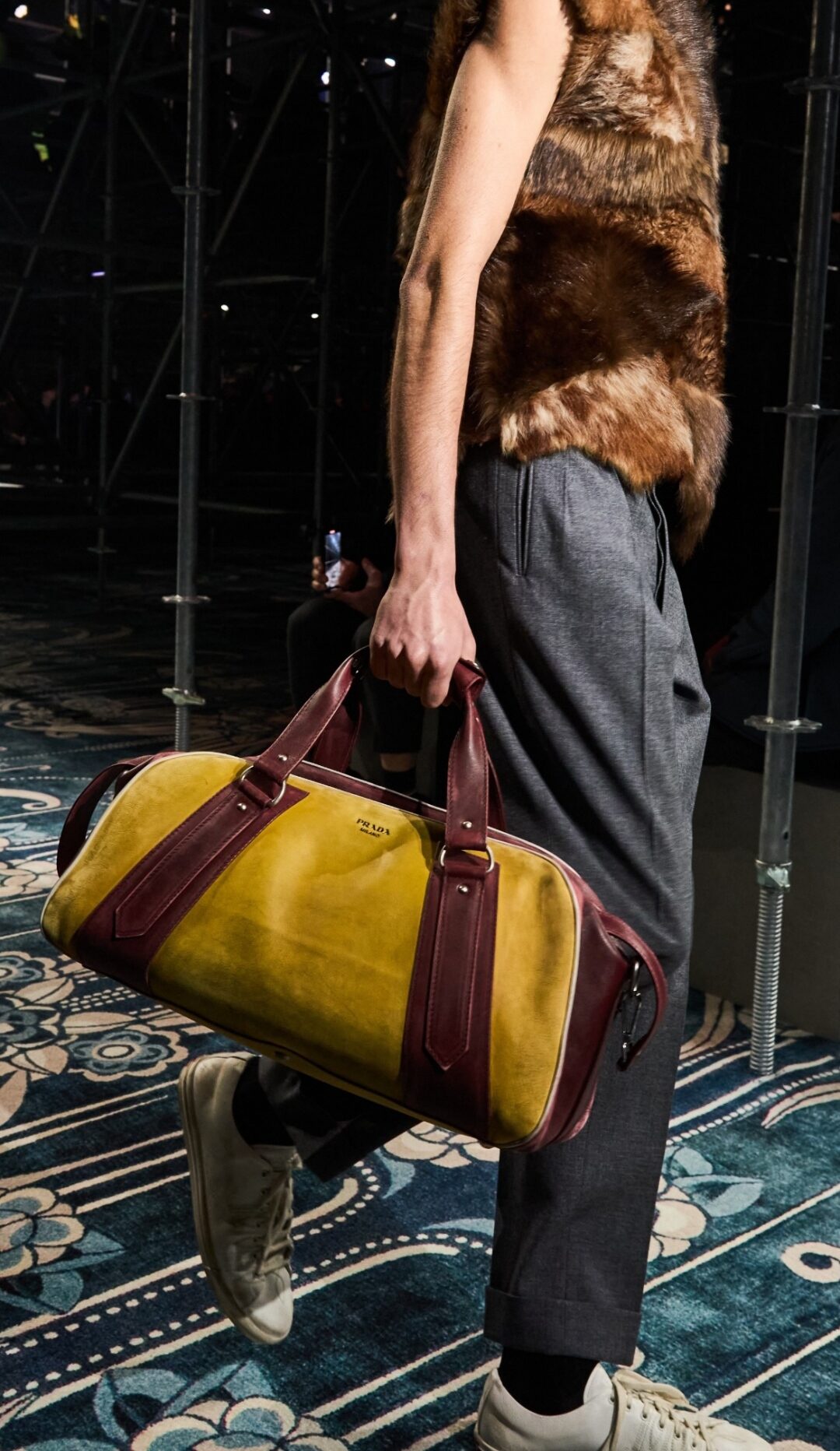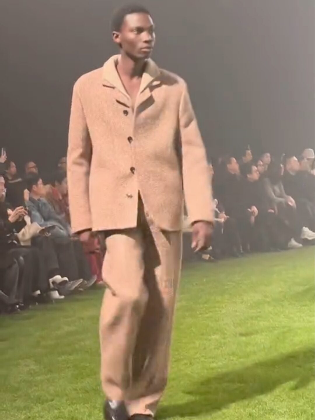 Un prato circolare a fare da passerella per la sfilata di Zegna, con otto maxischermo per permettere le proiezioni di greggi nella cornice australiana. A primeggiare la scena, l’attore John Turturro, modello per un giorno. La linea degli abiti appare decostruita e molto fluida, i volumi avvolgono, le proporzioni giocano e vincono in semplicità. Il motivi molto accentuati prince of Wales spiccano eleganti e irriverenti. La giacca viene rivisitata e riproposta in chiave montone, o in versione gilet nella versione jersey Oasi cashmere. I colori spaziano dal neutro, al verde marcio, color visone, rosso matto. I tessuti, come sempre, sono una garanzia di altissima qualità e bellezza, sofficissimi ed elegantissimi.