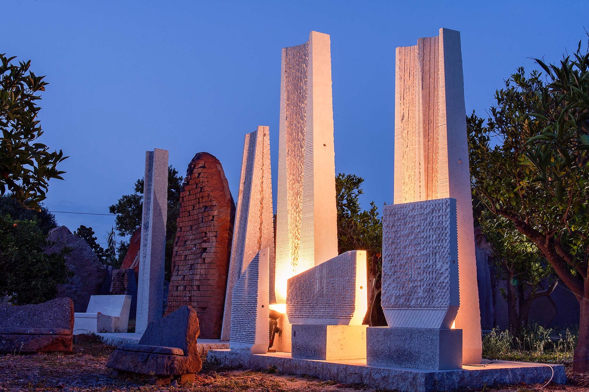 Un luogo d’arte, che si esprime in tutte le lingue del mondo, dove basalto e calcare producono suggestivi suoni arcaici, ancestrali e mistici; dove i “semi” di pietra sono seminati affinché la cultura fecondi la natura; dove i graniti, nel buio della notte, svelano attraverso la luce radente nuove superfici tridimensionali.