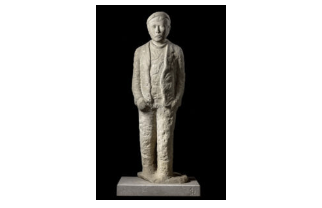 Un giorno nel parallelepipedo che serviva da seduta ai suoi familiari, accanto alla soglia della casa rustica dove abitava, Pinuccio intuì una figura di scolaretto; l’unico modo per farla “vivere” fu quello di prendere martello e scalpello per creare una statua in tutto simile a lui, goffo nell’abito troppo stretto, con uno sdrucito berrettino da ciclista in testa, ma dal viso intelligente e scaltro.