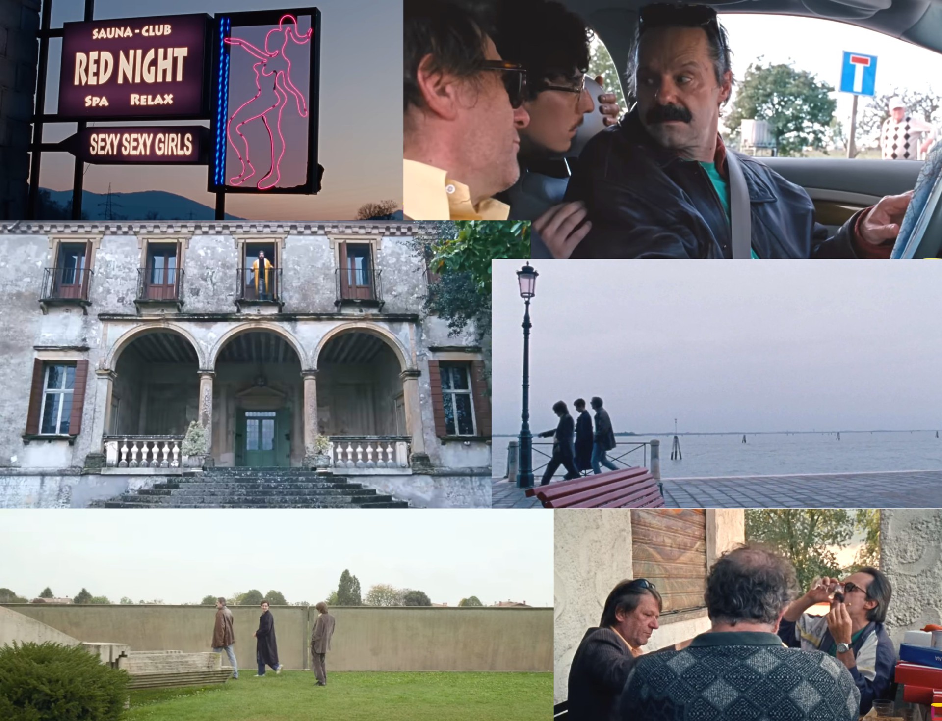 Lo studente di architettura cerca di prestare i suoi occhi anche ai suoi “sequestratori”: fotografa un edificio brutalista, fa consulenza improvvisata ad un conte decadente, è il cicerone nostrano alla tomba Brion. C’è anche Venezia, nella sua calma dei percorsi deviati, il baretto dei Tolentini.