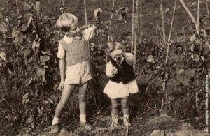 Fabrizio De Andrè con il fratello maggiore Mauro ritratti assieme nel 1943 alla Cascina dell’Orto di Revignano d’Asti (Courtesy Fondazione Fabrizio D’André)