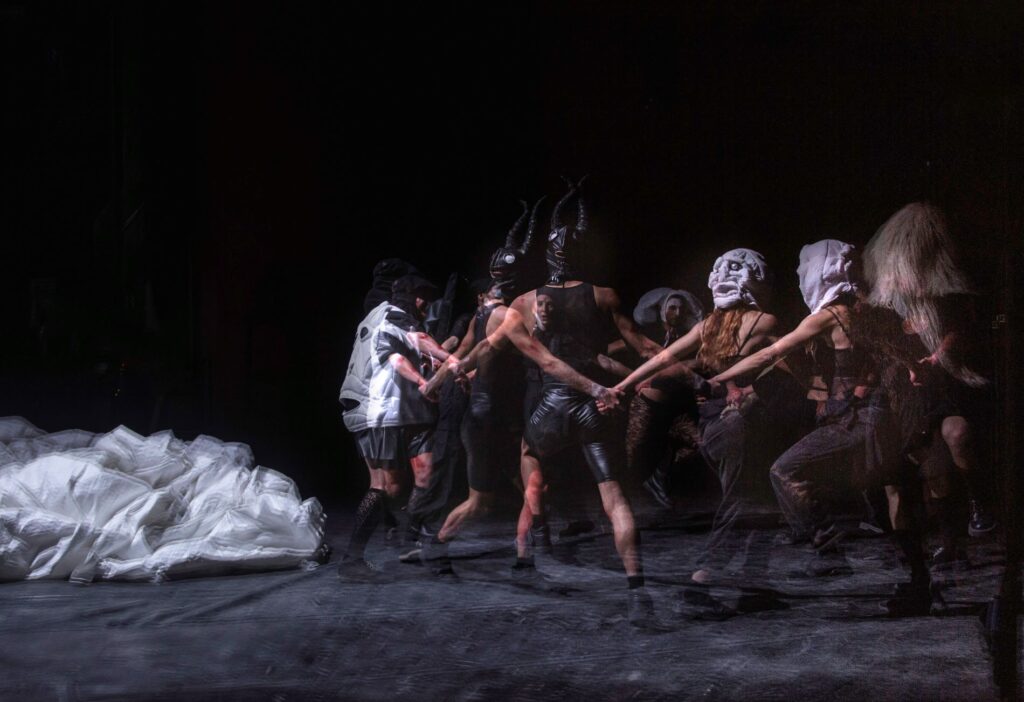 Catania. “Karrasekare” dell’ensemble “Igor x Moreno” è uno spettacolo di teatro danza di grande interesse e di estrema complessità e vitalità. Complessità e vitalità intellettuali, prima che materiali e formali. Sostanzialmente si tratta di uno spettacolo che prova a ricostruire la dimensione selvatica, agreste e dionisiaca del carnevale mediterraneo, rinvenendola nelle affascinanti modalità in cui questa festa popolare è stata vissuta nei secoli, e forse lo è ancora, in Sardegna e nei Paesi Baschi. Ma non si tratta di un lavoro di ricerca, di ricostruzione antropologica o di archeologia filosofica, ma di un lavoro di danza contemporanea. Una coreografia ben connessa a ciò che accade sulla scena nazionale ed europea, rivolta al presente e fornita, come è giusto che sia, di un pensiero critico e politico sul magma storico da cui risulta il presente e da cui sgorga il futuro (o un’idea di futuro per cui impegnarsi e lottare). In particolare l’assunto profondo di questo spettacolo sembra essere un’equazione di questo tipo: il pensiero e il movimento queer stanno all’autoritarismo conformista della cultura capitalista, come il dionisismo sta (o starebbe) alla cultura classica e precristiana. Consequenzialmente, cultura queer e spiritualità dionisiaca vengono letti come elementi vitali ed eversivi, se non proprio rivoluzionari, di critica profonda tra i quali sembra lecito stabilire un parallelismo perché entrambi legati a una riflessione sulla centralità del corpo e sulla liberazione del corpo e del desiderio. È un’idea/ipotesi fertile e interessante di cui i due autori dello spettacolo sembrano essersi fortemente convinti, persino innamorati si direbbe, e che trova una rispondenza straordinariamente densa nella coreografia di cui raccontiamo. Ci si stacca dalla oppressione conformista della cultura e ci si libera nella natura: ci si libera, gesto dopo gesto, movimento dopo movimento, contatto dopo contatto, relazione dopo relazione; ci si libera a partire dalle rivolte dei corpi desideranti e ci si libera anzitutto nei corpi; ci si libera nella terra e nell’acqua; ci si libera infine per mezzo della potenza ossessiva, straniante e “numinosa” del ritmo, della musica, della danza, per mezzo delle maschere, dell’ebbrezza, dell’accoglienza del divino, incontrollabile, misterioso enthousasmós e dell’abbandono di ogni forma di conformismo. Ci si libera e si rinasce, come rinasce (o meglio come sembra rinascere) in primavera la natura. Nel corso della coreografia questi momenti di liberazione vengono quasi osservati al microscopio, colti nella loro più originaria emozione e restituiti al flusso della danza che li assorbe, se ne nutre, li ripete, li semplifica e li amplifica. Regia e coreografia sono di Moreno Solinas e di Igor Urzelai Hernando. In scena a danzare ci sono Marcella Mancini, Alessio Rundeddu, Matteo Sedda, Giulia Vacca, Margherita Elliot, Igor Urzelai Hernando, Moreno Solinas. La consulenza drammaturgica è di Simon Ellis. Le musiche originali e il sound design sono di Edoardo Robert Elliot, mentre la scenografia e i costumi sono firmati dal duo Kaspersophie. Tutto bene dunque? C’è qualcosa che non convince? Lo spettacolo è molto affascinante nella sua definizione poetica e formale, ma probabilmente l’idea/ipotesi/equazione su cui si basa non è del tutto convincente perché non fa i conti fino in fondo con la limitazione temporale che è insita nel concetto di festa e nel concetto festivo e comico proprio del carnevale: in una società strutturata il potere ammette libertà e un grado significativo di disordine e licenza solo a patto che ci si limiti – rigorosamente – ai soli giorni della festa e che il tutto sia sterilizzato e reso culturalmente innocuo a priori. Se ci si sta riferendo a delle evidenti tracce di dionisismo nel carnevale tradizionale sardo e basco, non bisogna dimenticare che la cultura cattolica europea predominante fino all’età moderna (e rilevante nella contemporaneità, se pure non centrale rispetto al trionfo del liberalismo capitalista e materialista) le ha tollerate nel carnevale (e in feste simili), “riplasmate” (per citare De Martino”) e rifunzionalizzate in feste di religiosità popolare che a quel tipo di spiritualità e alle esigenze antropologiche connesse hanno continuato a dare voce e possibilità di espressione. Voce ed espressione, ma in una dimensione di conservatorismo culturale e politico e senza sostanziare alcuna moderna ideologia di liberazione dell’umano. Se invece il riferimento è al potere liberatorio del dionisismo, considerato e attinto nel mondo pagano e precristiano, bisogna ricordare che, aldilà del sacro nel mistero dei baccanali, la manifestazione più rilevante di questa spiritualità è da rinvenire nella nascita del teatro (le cui manifestazioni mimetiche spettacolari sono definite temporalmente) e che non è detto affatto che – per dirla in sintesi – anche nella cultura greca classica a vincere sia stato sempre Dioniso e non Penteo. Insomma, l’equazione politico culturale che sostanzia lo spettacolo, per quanto affascinante, andrebbe probabilmente approfondita ulteriormente sul versante del rapporto tra ideologia, repressione e delimitazione spazio temporale del festivo e del comico. E non è detto che non sarebbe un approfondimento altrettanto fertile e stimolante. Coreografia vista a Catania, a Scenario Pubblico, il 13 e 14 dicembre 2025.
