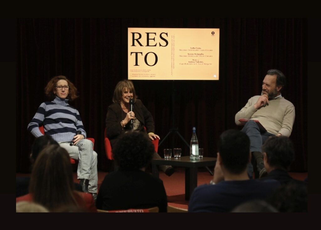 L’incontro si è aperto con il dialogo tra il moderatore dell’evento Andrea Valesini (Capo Redattore de L’Eco di Bergamo e autori di reportage da zone di guerra, tra cui l’Ucraina) e le Direttrici Artistiche del Carcano Lella Costa e Serena Sinigaglia.