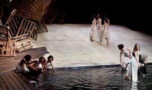 Giancarlo Cauteruccio, artista a tutto tondo -non solo regista, scenografo e attore ma anche musicista e compositore – infaticabile ricercatore che cerca di sondare i limiti dell’arte visiva e del teatro, si misura anche con i classici come “Le Troiane” di Euripide che gli ha ispirato lo spettacolo “Crash Troades” (2012) allestito nella piazza delle Erbe di San Gimignano e nell’area industriale di Piombino.