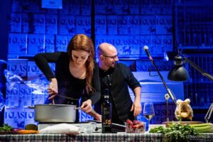 Alle ore 21, stesso spazio, è la volta del Food Ensemble di Francesco Sarcone, sound designer, Andrea Reverberi, chef sperimentatore e Marco Chiussi, sous chef e sommelier in “Il concerto che puoi mangiare”, anteprima di “Traccia Umbria” dello chef Tommaso Tonioni, Arso ristorante. Si tratta di “una composizione sonora eseguita con i suoni del cibo. Cinque piatti ideati ad hoc si fondono con cinque tracce sonore: musica elettronica che trae ispirazione e materia viva dai piatti preparati sul palco”.