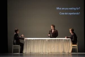 Masque Teatro, compagnia fondata da Lorenzo Bazzocchi, la stessa sera va in scena con “Oh Spirito!” monologo interpretato da Eleonora Sedioli con musiche di Stefano Pilia, che “evoca un’attesa interiore e un dialogo con il fantasma personale in un flusso sospeso tra ascolto e smarrimento” (al Teatro Akropolis).