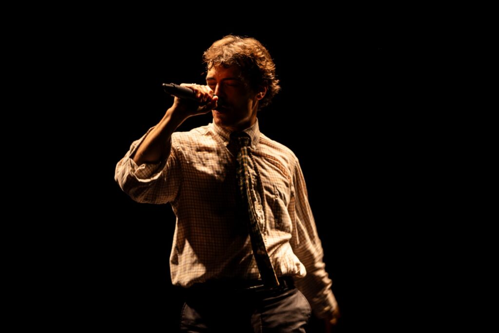 Per sempre. Testi tratti da lettere e cartoline inedite di Giovanni Testori ad I Trionfi di Giovanni Testori, dediche private di Giovanni Testori ad Alain Toubas. Ideazione, drammaturgia e creazione Alessandro Bandini. Con Alessandro Bandini. Dramaturg Ugo Fiore, sguardo esterno Alessandro Sciarroni, coaching Tindaro Granata, consulenza spazio scenico Giulia Pastore, disegno luci Elena Vastano, styling Ettore Lombardi, consulenza musicale Federica Furlani, tecnico luci, audio e video Alessandro Di Fraia. Produzione LAC Lugano Arte e Cultura, in coproduzione con Piccolo Teatro di Milano – Teatro d’Europa, CTB Centro Teatrale Bresciano, Emilia Romagna Teatro ERT / Teatro Nazionale, in collaborazione con Casa Testori, Institut Culturel Italien de Paris, La Corte Ospitale di Rubiera, con il sostegno di Inteatro Residenze, Fondazione Armunia. Foto di Masiar Pasquali