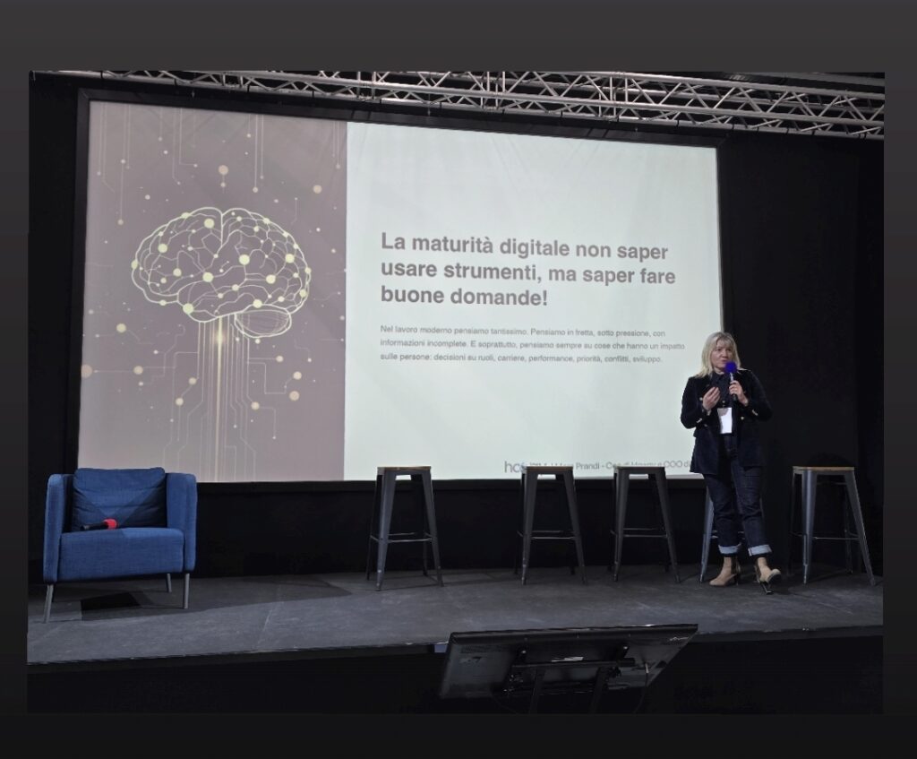 A seguire Mara Prandi, CEO Howay e COO MAW, ha parlato di maturità digitale. Quest’ultima non equivale a saper usare strumenti, ma saper fare buone domande.