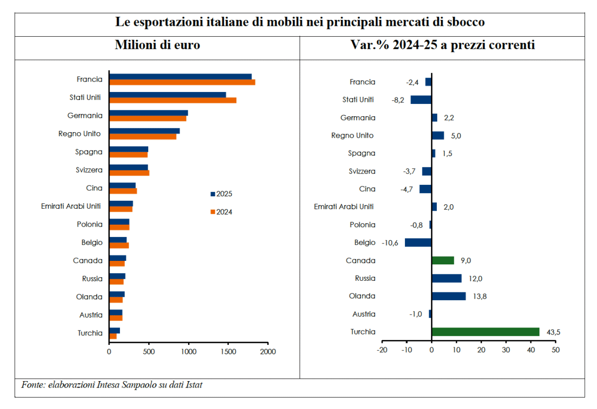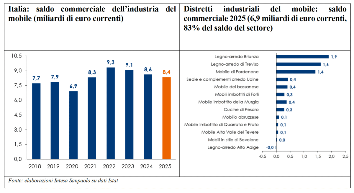 Il settore del mobile e del design Made in Italy consolida la propria posizione di leadership in Europa e si prepara ad affrontare un contesto internazionale sempre più complesso, tra tensioni geopolitiche, trasformazioni della domanda e nuove direttrici di sviluppo. È quanto emerge dall’analisi realizzata dal Research Department di Intesa Sanpaolo realizzata da Stefania Trenti, responsabile Industry & Local Economies, e Ilaria Sangalli, responsabile Industry Research del Research Department del gruppo, che fotografa un comparto solido, dinamico e capace di adattarsi rapidamente ai cambiamenti.