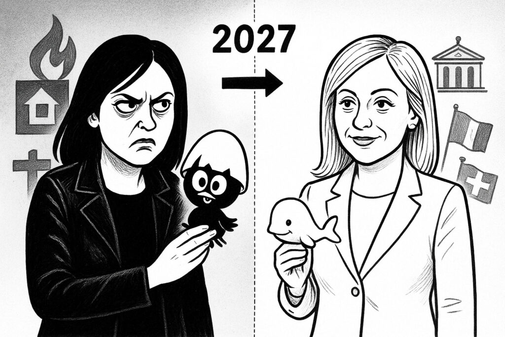 Perché vedete, il video “Fare la differenza” della misteriosa pagina “Giorgia 2027” – quella che nessuno sa chi gestisca ma che tutti guardano ipnotizzati – ci regala proprio questa narrazione: la trasformazione cromatica della protagonista dal nero al bianco. Un percorso di luce, di crescita, di… rebranding, forse, democristiano.
