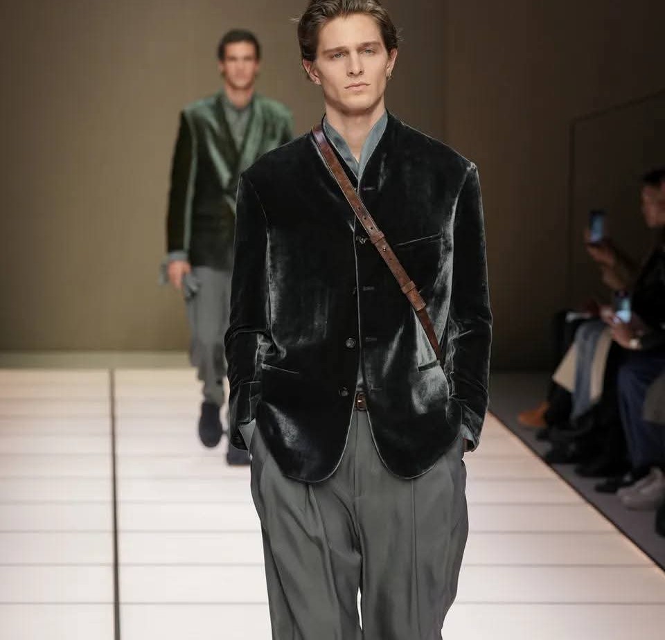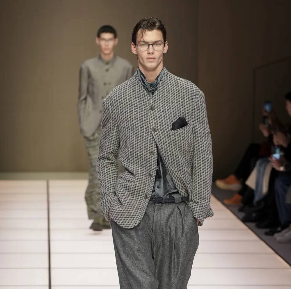 La prima collezione uomo autunno/inverno 2026 Giorgio Armani , firmata da Leo Dell’Orco, nasce in uno spazio sospeso: tra l’assenza fisica del fondatore e una presenza estetica così potente da continuare a guidare ogni gesto, ogni scelta, ogni silenzio.