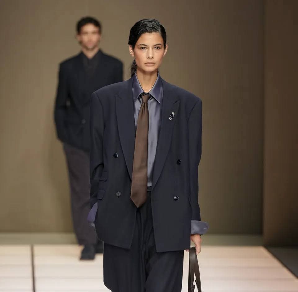 Questa prima collezione senza Giorgio Armani, è un passaggio di stato. Come se “l’armanismo” — quella grammatica perfetta fatta di equilibrio, misura e sensualità trattenuta — avesse ormai superato la dimensione individuale per diventare patrimonio culturale.