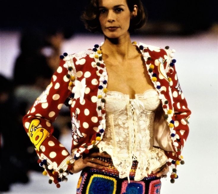 Moschino non ha mai voluto uniformarsi. Rifiutava le regole imposte — estetiche, sociali, commerciali — e trasformava ogni collezione in uno spazio di critica visiva. Dietro la leggerezza apparente, si celava un pensiero profondo: la moda, per lui, non doveva essere un dettato da seguire, ma un gioco intellettuale da riscrivere ogni volta. Illustratore prima, couturier poi, Moschino osservava il fashion system da fuori e ne smontava le certezze con tagliente ironia. Dove altri cercavano perfezione e status, lui inseriva caos, citazioni pop, materiali inusuali e messaggi sovversivi. Non temeva di sfidare i mostri sacri: reinterpretava Chanel con irriverenza, scriveva “NO” su abiti da sera, metteva in scena sfilate come spettacoli teatrali in cui l’abito diventava manifesto. Ogni creazione era un cortocircuito visivo — ironico, intelligente, politicizzato. Concepiva la moda come uno strumento per riflettere sul consumismo, sull’identità, sul ruolo sociale dell’apparenza. Ma lo faceva senza moralismi, usando il potere del paradosso per smascherare le finzioni dell’industria. La sua era un’ironia colta, affilata, capace di scardinare con grazia ogni certezza. “Io non faccio moda, faccio anti-moda”, dichiarava. Eppure proprio questa negazione generava una nuova estetica, fatta di intuizioni brillanti, rigore sartoriale e invenzioni visive che spiazzavano e incantavano.
