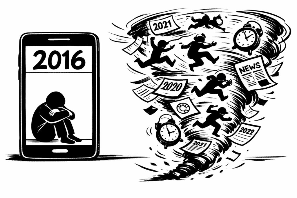 Sean Monahan, influente osservatore culturale americano, co-fondatore di K-HOLE (il collettivo creativo che ha coniato il termine “normcore”), nella sua newsletter 8Ball, ha recentemente scritto sulla strana percezione del tempo che caratterizza la nostra epoca, partendo da una citazione di Lenin: “Ci sono decenni in cui non accade nulla; e ci sono settimane in cui accadono decenni.” Questa frase cattura perfettamente la sensazione che molti di noi hanno provato negli ultimi anni.