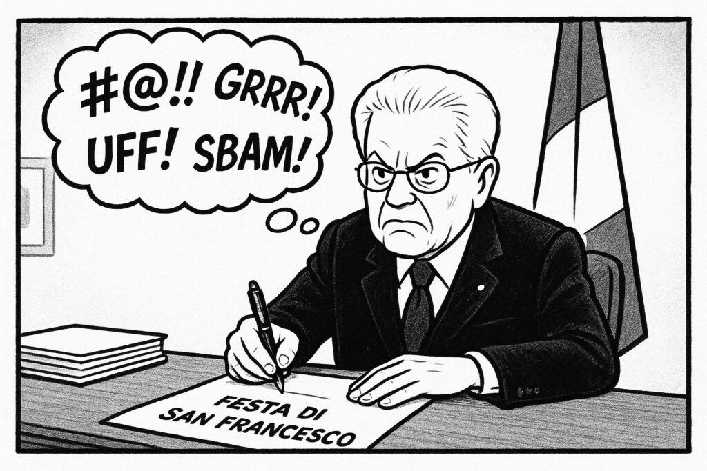 Ma torniamo alla surreale polemica odierna. La legge, promulgata dal Presidente Mattarella con evidenti riserve, presenta una contraddizione grottesca: la stessa data risulta ora qualificata contemporaneamente come festività nazionale per San Francesco e solennità civile per Santa Caterina da Siena. Un pasticcio legislativo che non è solo tecnico, ma simbolico di un’ipoteca religiosa che permea ogni aspetto della vita pubblica italiana. Un’ipoteca che, paradossalmente, negli ultimi anni sembra essersi rafforzata proprio mentre i fedeli diminuiscono e le chiese si svuotano.