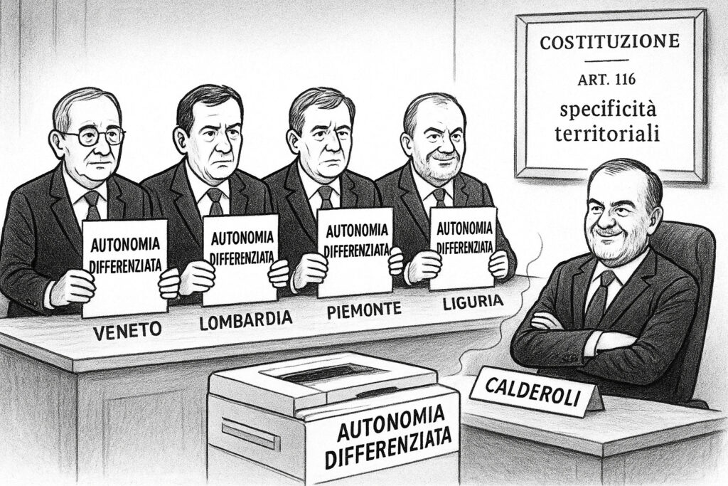 Ma nel caso dell’autonomia differenziata, il copia-incolla rivela qualcosa di più sostanziale. Se Veneto, Lombardia, Piemonte e Liguria – regioni con economie, geografie e problematiche sociali diverse – chiedono esattamente le stesse cose, forse quelle problematiche non sono poi così specifiche. Forse l’esigenza di autonomia non nasce da particolari caratteristiche territoriali che richiedono soluzioni su misura, ma da un interesse comune: gestire direttamente i fondi.