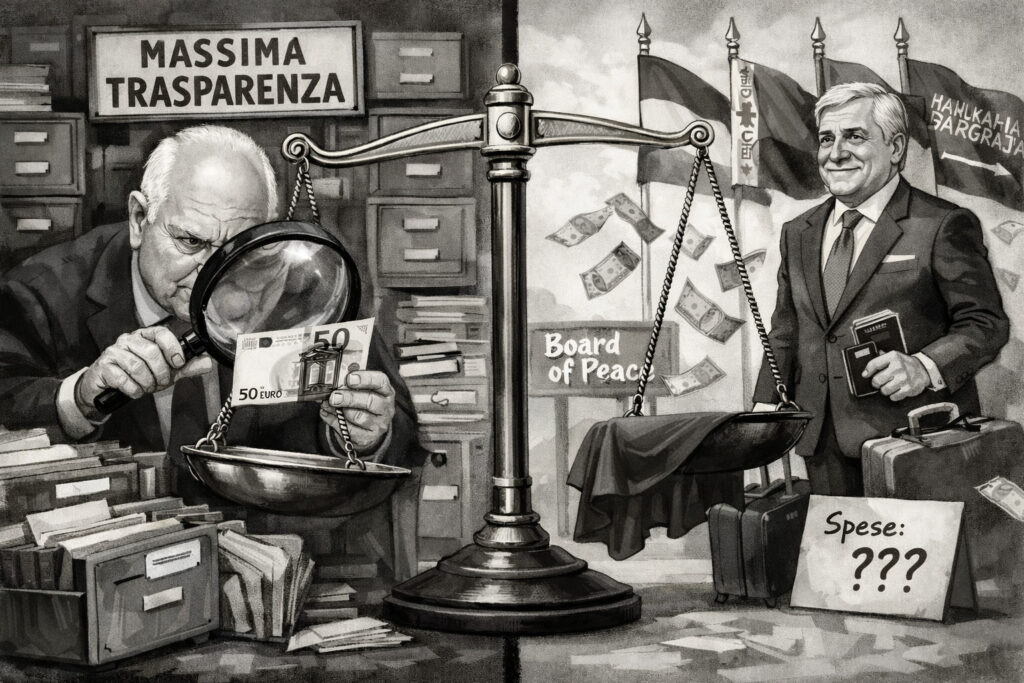 Quindi, mentre il ministero della Giustizia vuole conoscere i nomi di migliaia di cittadini che hanno liberamente donato poche decine di euro ciascuno a un comitato referendario perfettamente legale, nessuno sembra porsi domande altrettanto puntuali sulla missione italiana al Board of Peace. Chi viaggerà il 19 febbraio? Sarà il ministro degli Esteri Antonio Tajani, la premier Giorgia Meloni, o un funzionario di rango inferiore? E soprattutto: a quale titolo? La missione è ufficialmente istituzionale, quindi pagata con i soldi dei contribuenti italiani? Oppure, trattandosi di un organismo dalla dubbia legittimità internazionale, creato e dominato da un presidente straniero senza alcun mandato multilaterale, i rappresentanti italiani dovrebbero pagarsi il viaggio di tasca propria?