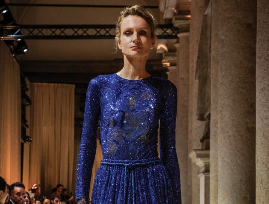Mentre Ludovico Einaudi suona “Nuvole Bianche” e “Divenire”, ogni passo sulla passerella sembra una nota, ogni volto un ricordo, ogni abito una dedica. Quando Agnes Zogla, musa del designer, chiude la sfilata, la sala intera si alza in piedi. In silenzio. Con gratitudine.