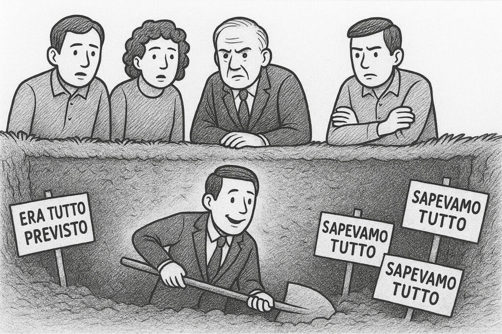 Il problema sta probabilmente in una combinazione di fattori psicologici e politici. C’è l’effetto “sunk cost”, il costo sommerso: quando hai già investito risorse in una posizione, tendi a difenderla anche quando diventa insostenibile, perché ammettere l’errore significherebbe riconoscere che tutto quell’investimento è stato sprecato. C’è poi la cultura politica italiana che premia raramente l’ammissione di colpa e interpreta il cambio di posizione come debolezza. In un sistema mediatico che enfatizza il conflitto, dire “ho sbagliato” è visto come un suicidio politico. Meglio attaccare, contrattaccare, trovare giustificazioni, scaricare la colpa su altri.