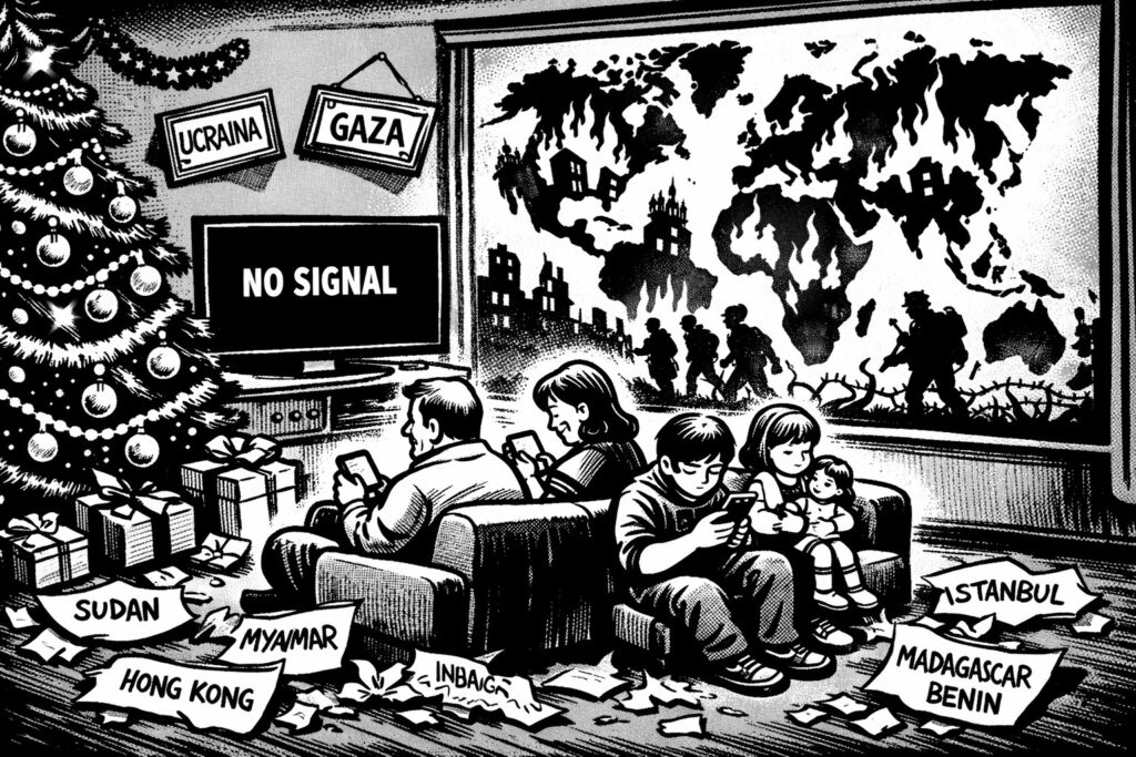 A Hong Kong non ci sarà più opposizione da festeggiare sotto le luci natalizie. A Istanbul, İmamoğlu passerà il Capodanno in cella aspettando un processo farsa. In Sudan, Myanmar, Madagascar, la pace sulla terra resterà solo una frase da cartolina.