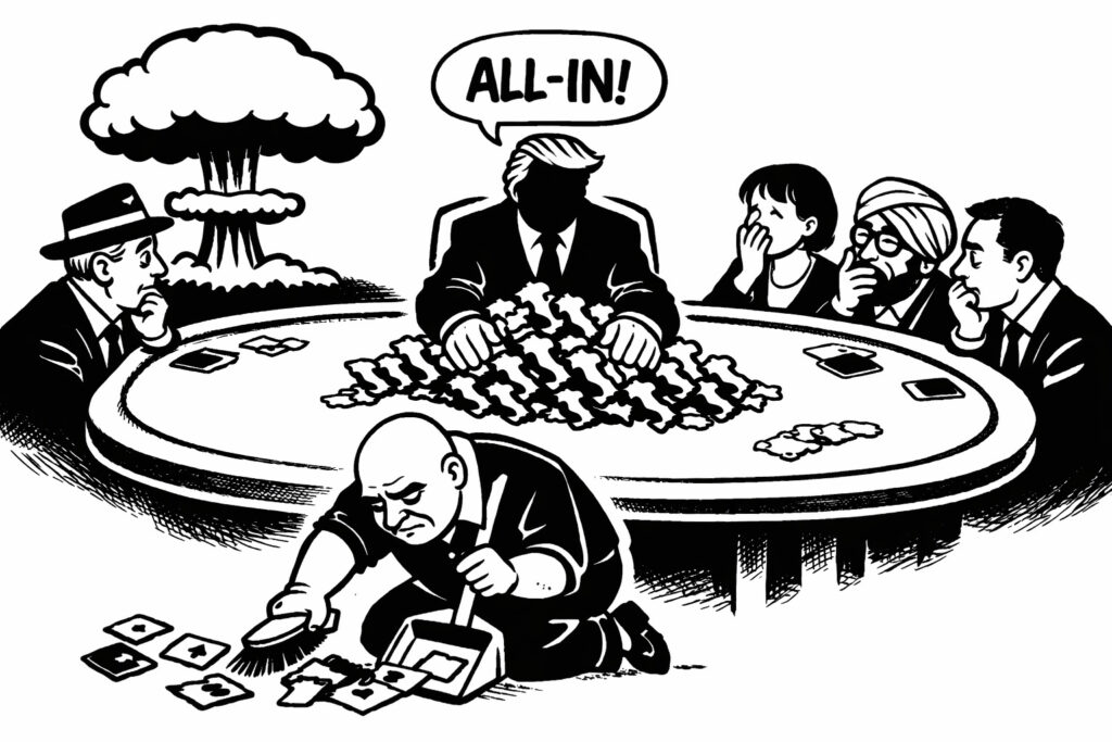 Il vero rischio, come ricordano molti analisti, non è che il ricatto nucleare fallisca. È che continui a funzionare. Ogni successo rende più probabile la ripetizione della strategia, e ogni ripetizione riduce lo spazio per l’errore. Se vai all‑in cento volte, la centunesima qualcuno avrà una mano imbattibile. E quando succede, non c’è margine di recupero.